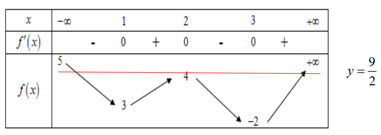 Số nghiệm thực của phương trình \(2f\left( x \right) - 9 = 0\) là: