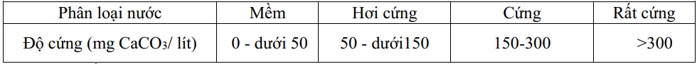 Theo TCVN 5502: 2003, dựa vào độ cứng của nước (được xác định bằng tổng hàm lượng Ca2+ và
