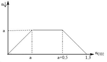 Dung dịch X chứa a mol Ba(OH)2. Cho m gam NaOH vào X sau đó sục CO2 (dư) vào ta thấy lượng kết tủa biến đổi theo đồ thị sau: