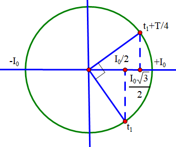 Cường độ dòng điện tức thời chạy qua một đoạn mạch xoay chiều là \(i = 2\cos 100\pi t\,\,\left( A \right)\)(t đo bằng giây). Tại thời điểm \({t_1}\), dòng điện đang tăng và có cường độ bằng 1A. Đến thời điểm \(t = {t_1} + 0,005s\) cường độ dòng điện qua mạch bằng