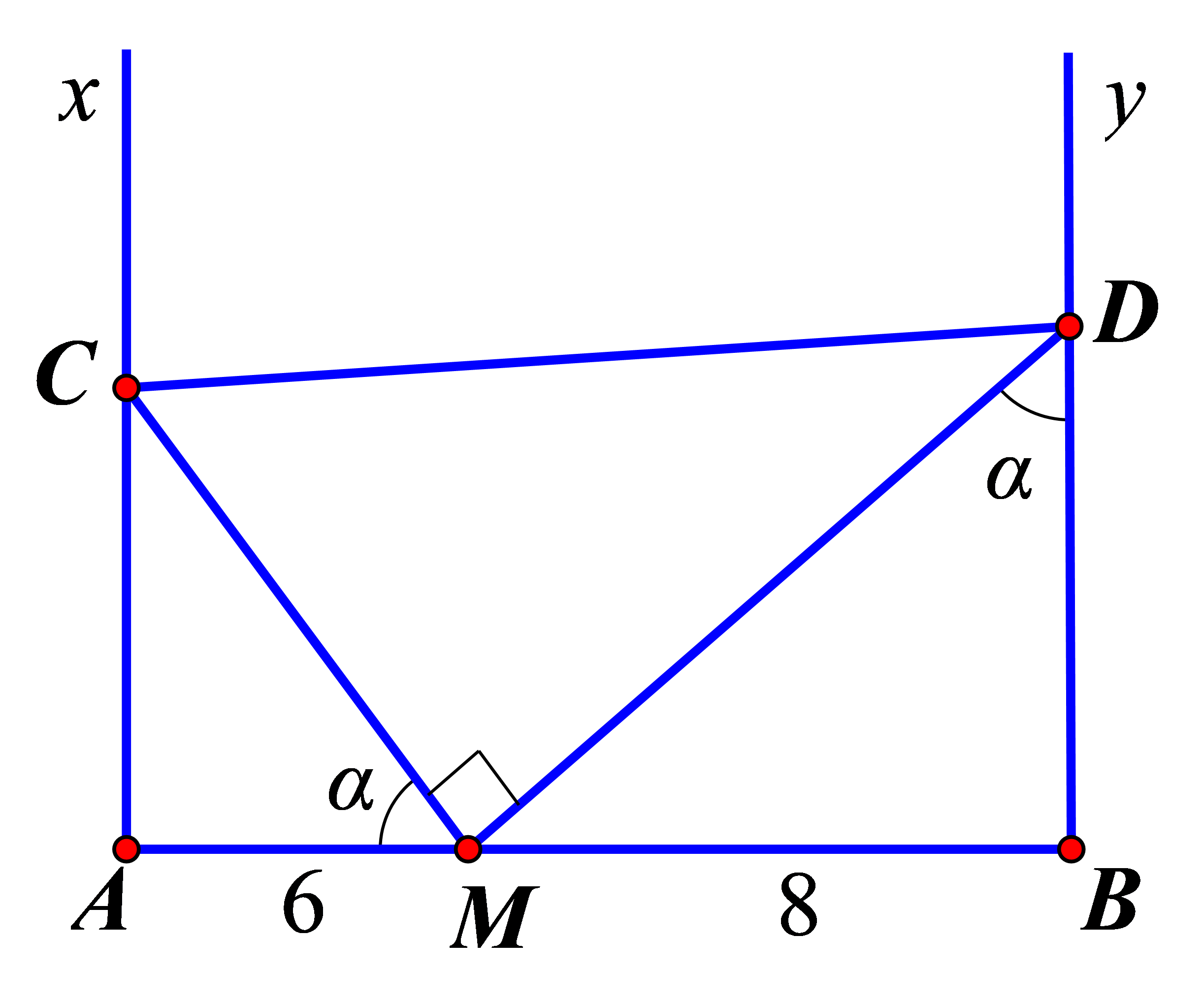 Tại mặt nước hai nguồn kết hợp được đặt ở A và B cách nhau 14cm, dao động điều hòa cùng tần số, cùng pha theo phương vuông góc với mặt nước. Sóng truyền trên mặt nước với bước sóng 1,2 cm. Điểm M nằm trên đoạn AB cách A một đoạn 6cm. Ax và By là hai nửa đường thẳng trên mặt nước, cùng một phía so với AB và vuông góc với AB. Cho điểm C di chuyển trên Ax và điểm D di chuyển trên By sao cho MC luôn vuông góc với MD. Khi diện tích tam giác MCD có giá trị nhỏ nhất thì số điểm dao động với biên độ cực đại trên đoạn CD là
