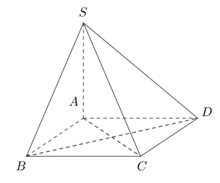 Cho hình chóp \(S.ABCD\) có đáy \(ABCD\) là hình vuông cạnh \(a,\,\,SA\) vuông góc với mặt phẳng