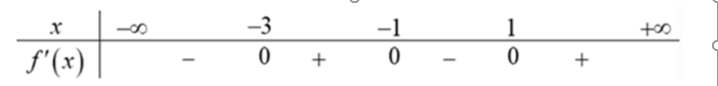Cho hàm số \(y = f\left( x \right)\) . Bảng xét dấu của \(f'\left( x \right)\) như hình vẽ: