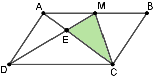 Cho hình bình hành ABCD có M là trung điểm của cạnh AB. Hai đoạn thẳng AC và DM cắt nhau tại E. Tính diện tích tam giác MEC, biết diện tích tam giác MBC = 15 cm2.
