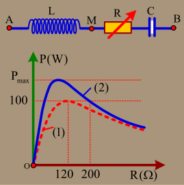 Khi R thay đổi: \({P_{\max }} = \dfrac{{{U^2}}}{{2R}} = \dfrac{{{U^2}}}{{2\left| {{Z_L} - {Z_C}} \right|}}\) (khi đó \(R = \left| {{Z_L} - {Z_C}} \right|\))