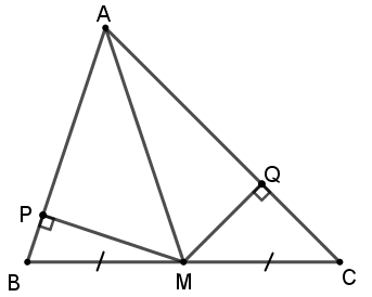 Cho tam giác ABC, M là điểm chính giữa cạnh BC. Từ M kẻ MQ và MP vuông góc với các cạnh AC và