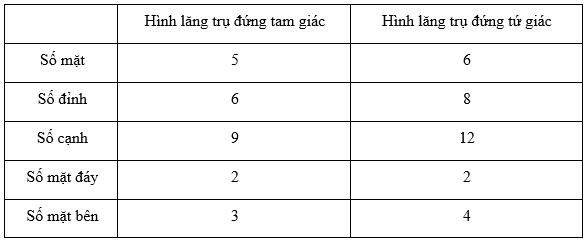 Các mặt bên của hình lăng trụ đứng tam giác và hình lăng trụ đứng tứ giác đều là các hình chữ nhật.