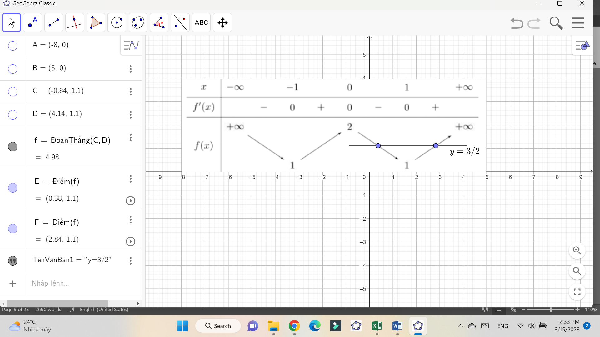 Số nghiệm thực dương của phương trình \(2f\left( x \right) - 3 = 0\) là: