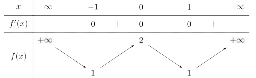 Cho hàm số \(y = a{x^4} + b{x^2} + c\,\,\left( {a,b,c \in \mathbb{R}} \right)\) và có bảng biến thiên như hình vẽ