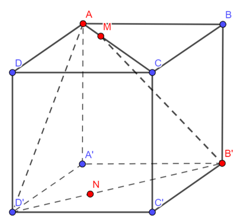 Cho hình lập phương ABCD.A’B’C’D’ cạnh a. Gọi M, N là các điểm lần lượt di động trên