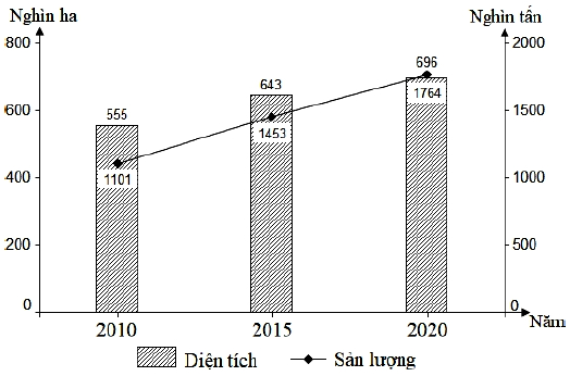 Cho biểu đồ về cà phê của nước ta giai đoạn 2010 - 2020:(Số liệu theo Niên giám thống kê