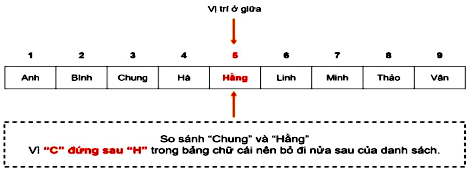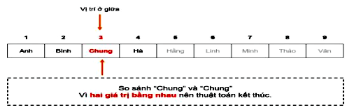 Mô tả thuật toán tìm kiếm nhị phân để giải quyết bài toán muốn tìm tên bạn Chung trong danh