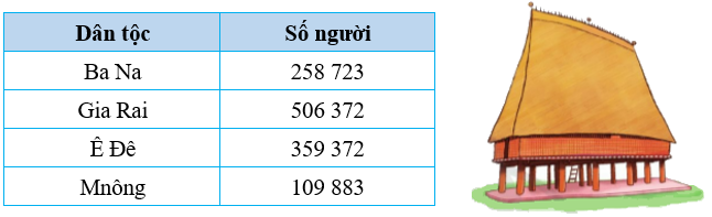 Bảng thống kê dưới đây cho biết số lượng người của một số dân tộc ở Tây Nguyên tính đến ngày 1 tháng 4 năm 2019: