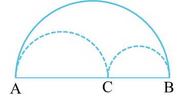 Ta so sánh chu vi của nửa đường tròn đường kính AB và tổng chu vi của nửa đường tròn đường kính AC với nửa đường tròn đường kính CB.
