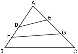 Tính diện tích tứ giác BCGE và DEGF theo diện tích tam giác ABC, từ giả thiết suy ra diện tích tam giác ABC.