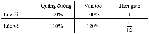 Lập tỉ số giữa vận tốc lúc đi và vận tốc lúc về, rồi suy ra tỉ số giữa thời gian đi và thời gian về.