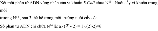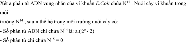 Xét một phân tử ADN vùng nhân của vi khuẩn E.Coli chứa N15 . Nuôi cấy vi khuẩn trong môitrường