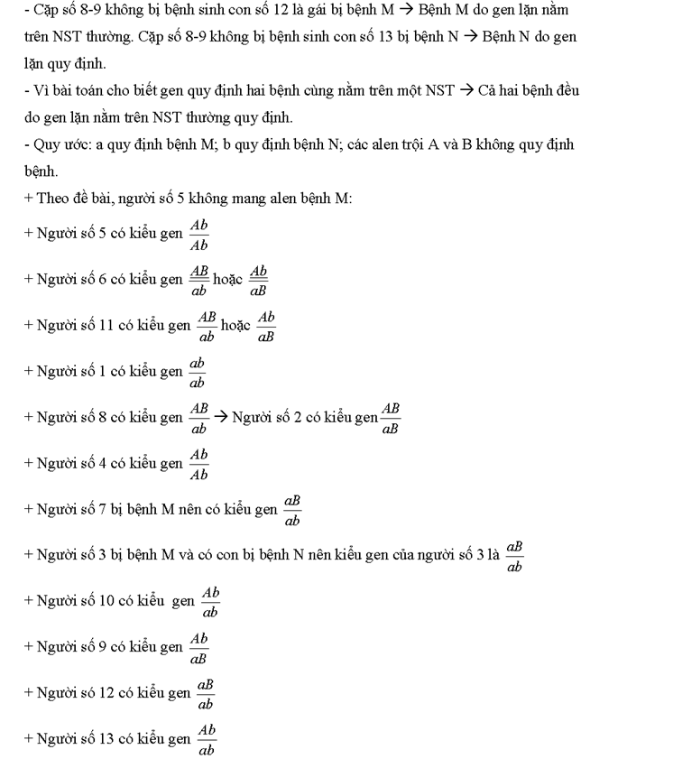 - B2: Dựa vào kiểu hình lặn để tìm ra các kiểu gen có thể có ở từng cá thể và tỉ lệ của chúng