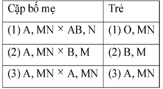 Ở người hệ nhóm máu ABO và hệ nhóm máu MN được qui định bởi các kiểu gen như sau: