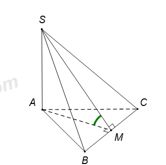Cho hình chóp S.ABCD có ABC là tam giác vuông tại A, AB = a, \(AC = a\sqrt 3 \). Cạnh bên \(SA = \dfrac{a}{2}\) vuông góc với mặt đáy. Tính góc tạo bởi hai mặt phẳng (SBC) và (ABC).