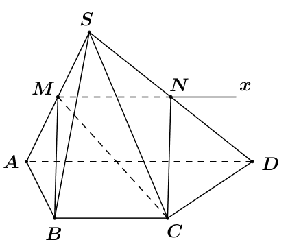 Cho hình chóp S.ABCD có đáy ABCD là hình thang, AD // BC, AD = 2BC, M là trung điểm SA. Tìm thiết diện của hình chóp cắt bởi mặt phẳng (MBC).
