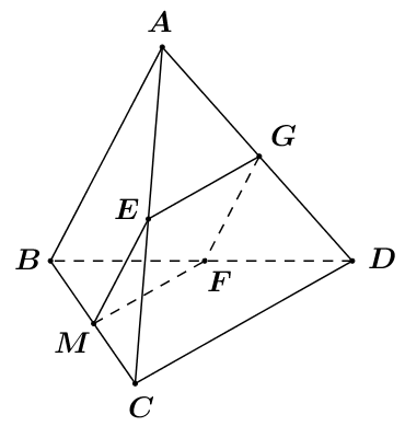 Cho tứ diện ABCD. Giả sử M thuộc đoạn thẳng BC. Một mặt phẳng \(\left( \alpha \right)\) qua