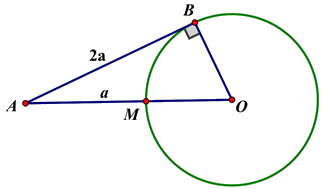 Cho đường tròn \(\left( O \right)\)và điểm A ở ngoài đường tròn. Kẻ tiếp tuyến AB với \(\left( O \right)\) với B là tiếp điểm. Gọi M là giao điểm của đoạn thẳng OA với \(\left( O \right)\). Biết AB = 2a, AM = a. Tính bán kính của đường tròn theo a.