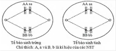 Hình bên mô tả một giai đoạn của 2 tế bào cùng loài đang trong quá trình giảm phân. Giả sử
