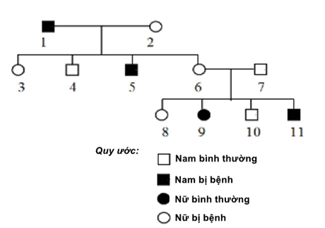Cho sơ đồ phả hệ: Sơ đồ phả hệ trên mô tả sự di truyền một bệnh ở người do một