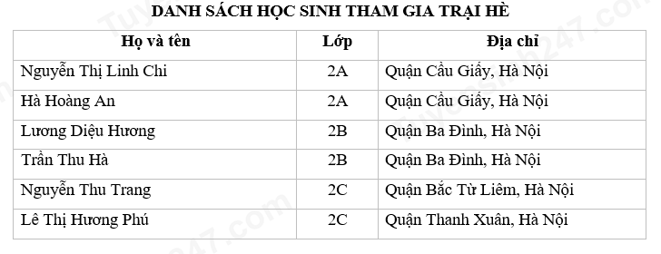 Đọc danh sách dưới đây rồi trả lời các câu hỏi:
