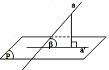 Góc giữa đường thẳng \(a\) và mặt phẳng \(\left( P \right)\) là góc giữa đường thẳng \(a\) và \(a'\).