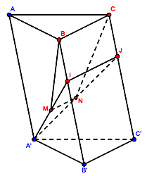 Cho hình lăng trụ \(ABC.A'B'C'\) có thể tích bằng \(36{a^3}\). \(I,J\) là hai điểm lần lượt thuộc