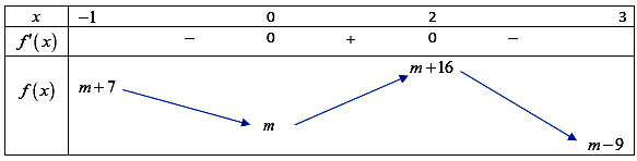 Khảo sát hàm số \(f\left( x \right) = - {x^4} + 8{x^2} + m\) trên đoạn \(\left[ { - 1;3} \right]\). Từ đó đánh giá GTLN của hàm số \(y = \left| { - {x^4} + 8{x^2} + m} \right|\) trên đoạn \(\left[ { - 1;3} \right]\).