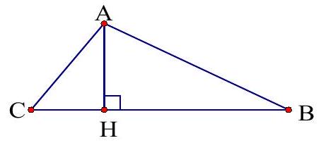 Cho hình vẽ bên. Biết rằng \({\rm{AB}} > {\rm{AC}},{\rm{AH}} \bot {\rm{BC}}\). Kết luận nào sau đây
