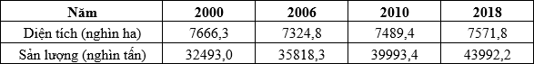 DIỆN TÍCH GIEO TRỒNG VÀ SẢN LƯỢNG LÚA CỦA NƯỚC TA QUA CÁC NĂM