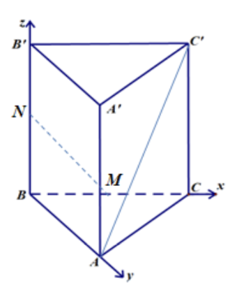 Cho hình lăng trụ đứng ABC.A’B’C’ có đáy là một tam giác vuông cân tại B. AB = AA’ = 2a, M, N