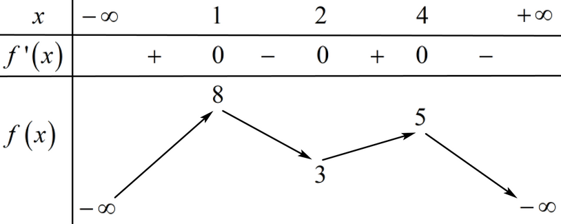 Cho hàm số y = f(x) có đạo hàm trên \(\mathbb{R}\) và có bảng biến thiên như hình vẽ. Giá trị