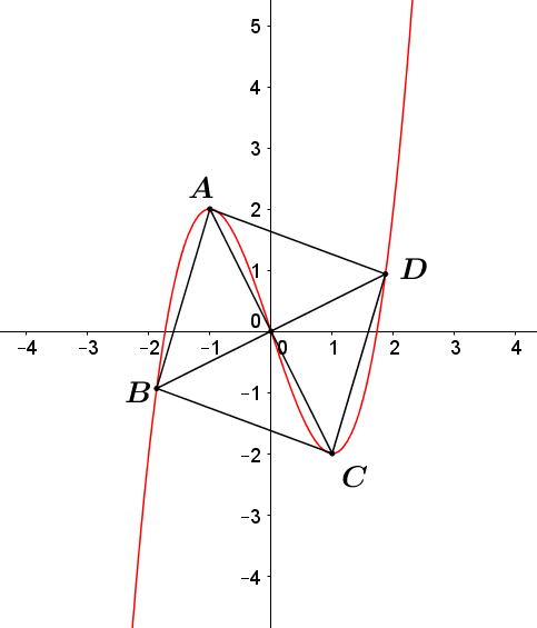 Cho hàm số \(f(x) = {x^3} - 3x\). Số hình vuông có bốn đỉnh nằm trên đồ thị hàm số \(y = f(x)\)