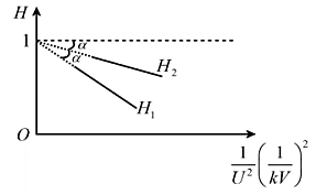 Điện năng được truyền tải từ hai máy phát đến hai nơi tiêu thụ bằng các đường dây tải một pha có điện trở \(R = 50\Omega \) với hệ số công suất bằng 1. Biết hiệu suất truyền tải là \(H = 1 - \dfrac{{PR}}{{{U^2}{{\cos }^2}\varphi }}\). Nếu trạm phát có công suất \({P_1}\) thì hiệu suất truyền tải là \({H_1}\). Nếu trạm phát có công suất là \({P_2}\) thì hiệu suất truyền tải là \({H_2}\). Đường biểu diễn sự phụ thuộc của hiệu suất H vào U như hình vẽ. Biết \({P_1} + {P_2} = 10kW\) thì giá trị của \({P_2}\) là