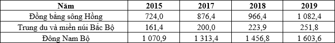 TỔNG MỨC BÁN LẺ HÀNG HOÁ VÀ DOANH THU DỊCH VỤ TIÊU DÙNG CỦA MỘT SỐ VÙNG NƯỚC TA GIAI ĐOẠN 2015 - 2019