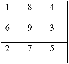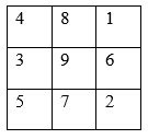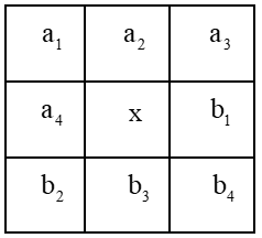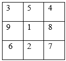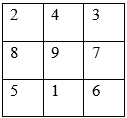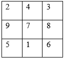 Cho bảng ô vuông \(3 \times 3\) (gồm ba dòng và ba cột). Người ta ghi tất cả các số thuộc tập hợp \(\left\{ {1;2;3;4;5;6;7;8;9} \right\}\) vào các ô vuông của bảng, mỗi ô vuông ghi một số, sao cho tổng các số trong mỗi bảng vuông con cỡ \(2{\rm{x}}2\) đều bằng nhau.