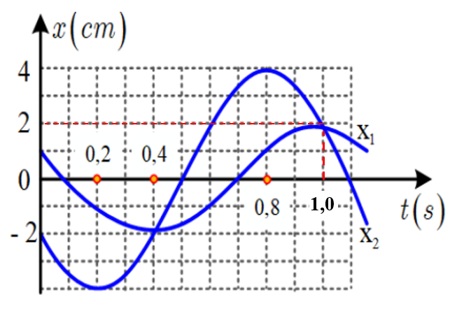 Đồ thị li độ theo thời gian của một chất điểm dao động điều hòa được mô tả như hình vẽ. Xác định li độ của hai vật tại thời điểm 1,0 s.