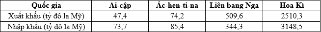 Cho bảng số liệu: XUẤT KHẨU, NHẬP KHẨU HÀNG HÓA VÀ DỊCH VỤ CỦA MỘT SỐ QUỐC GIA NĂM