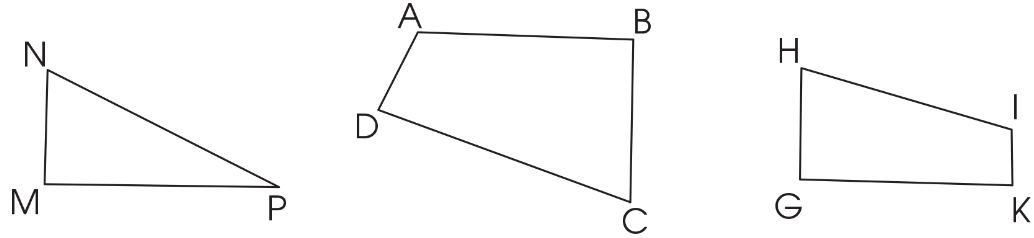 Cho các hình sau: a) Nêu tên đỉnh, cạnh, góc có trong mỗi hình trên. b) Trong mỗi hình trên có bao