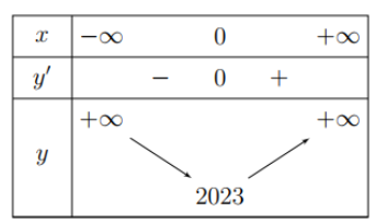 Cho hàm số \(y = |x{|^3} - mx + 2023\), với \(m\) là tham số thực. Hàm số đã cho có thể có nhiều