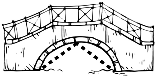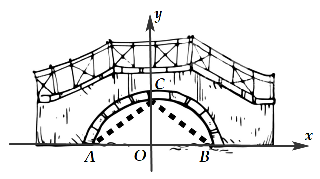 Trong giai đoạn sửa chữa cầu, nhà thầu thi công gia cố thêm hệ thống chịu tải là 2 thanh sắt có độ dài bằng nhau (được vẽ nét đứng trong hình). Biết phần cong của cây cầu là nửa đường tròn bán kính là 2 mét. Xác định phương trình đường thẳng của những thanh chịu tải.