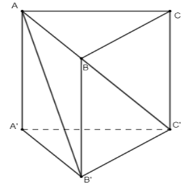 Cho hình lăng trụ tam giác đều \(ABC.A'B'C'\) có cạnh đáy bằng \(2a\), góc giữa hai đường thẳng