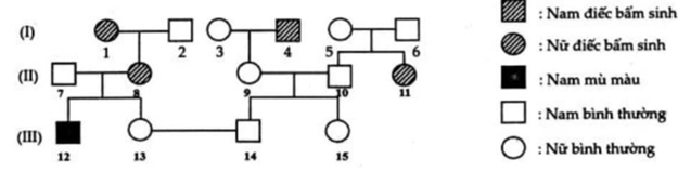 Cho sơ đồ phả hệ sau:Biết rằng bệnh mù màu nằm trên nhiễm sắc thể giới tính X qui định.