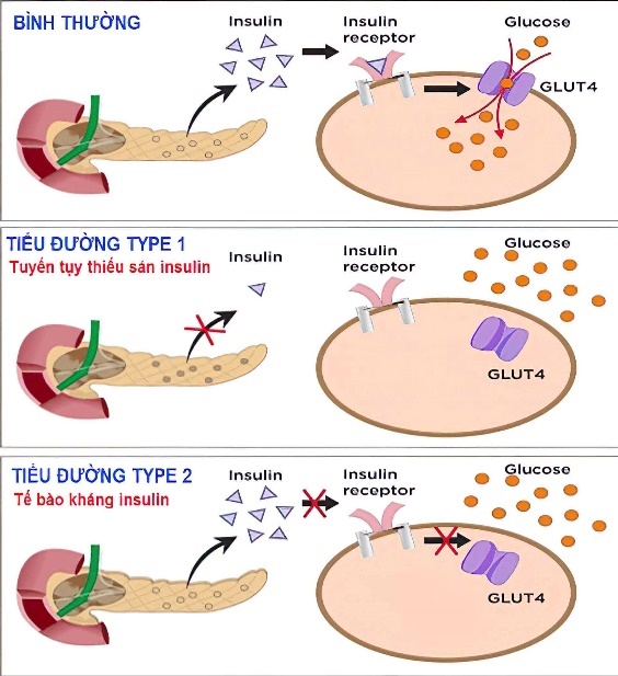 Cơ chế điều hòa lượng đường trong máu của cơ thể: Sau khi ăn, lượng đường huyết sẽ tăng lên, khi đó tuyến tụy sẽ giải phóng insulin để đưa glucose vào các tế bào để giảm lượng đường trong máu trở về mức bình thường.