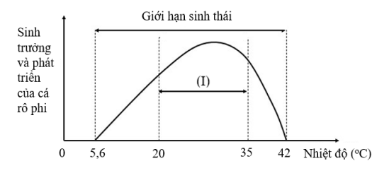Hình bên mô tả giới hạn sinh thái về nhiệt độ của cá rô phi, trong đó (I)
